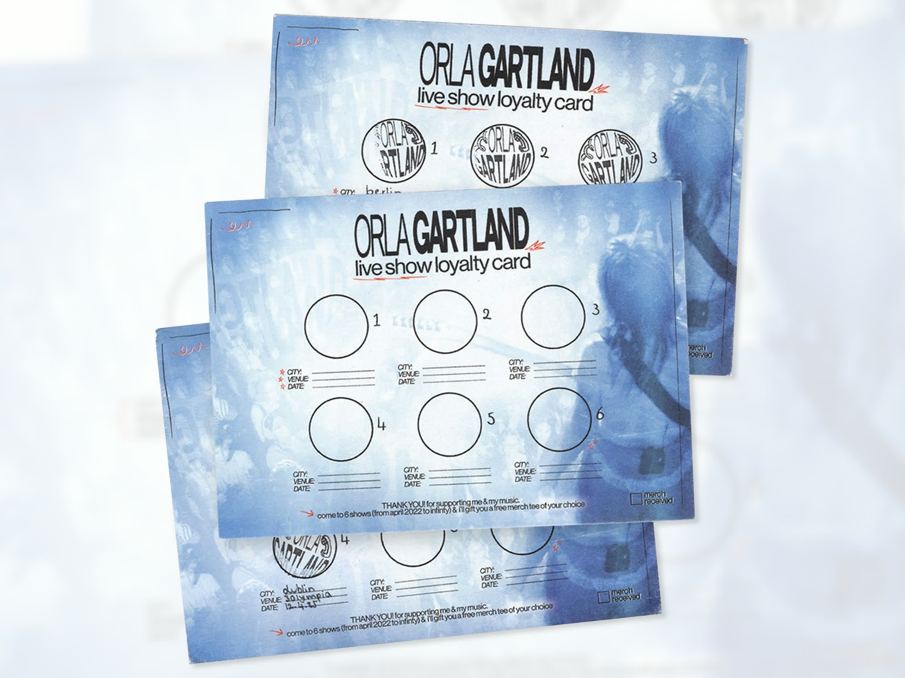 Live show loyalty card design for Orla Gartland live shows, 2025