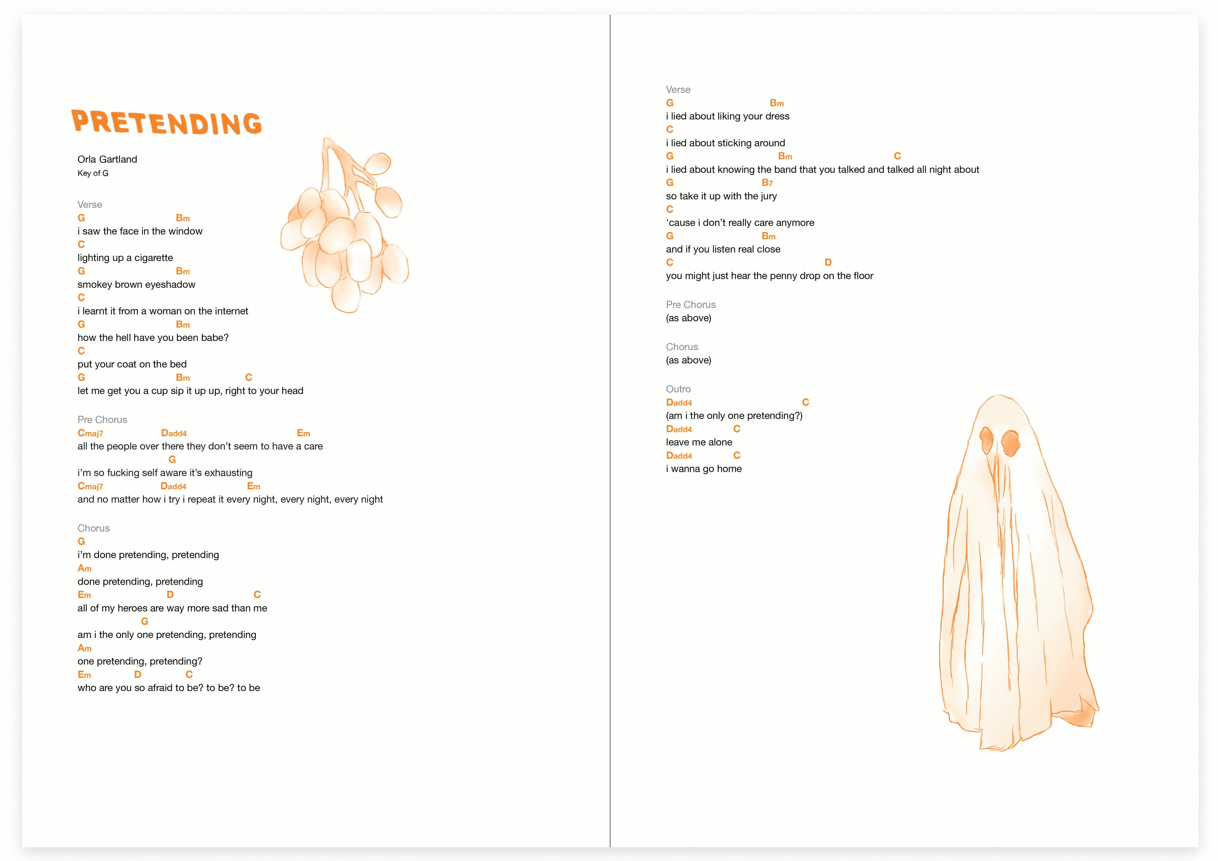 Illustrations and cover art for Orla Gartland's digital 'Woman on the Internet' chord book 2021