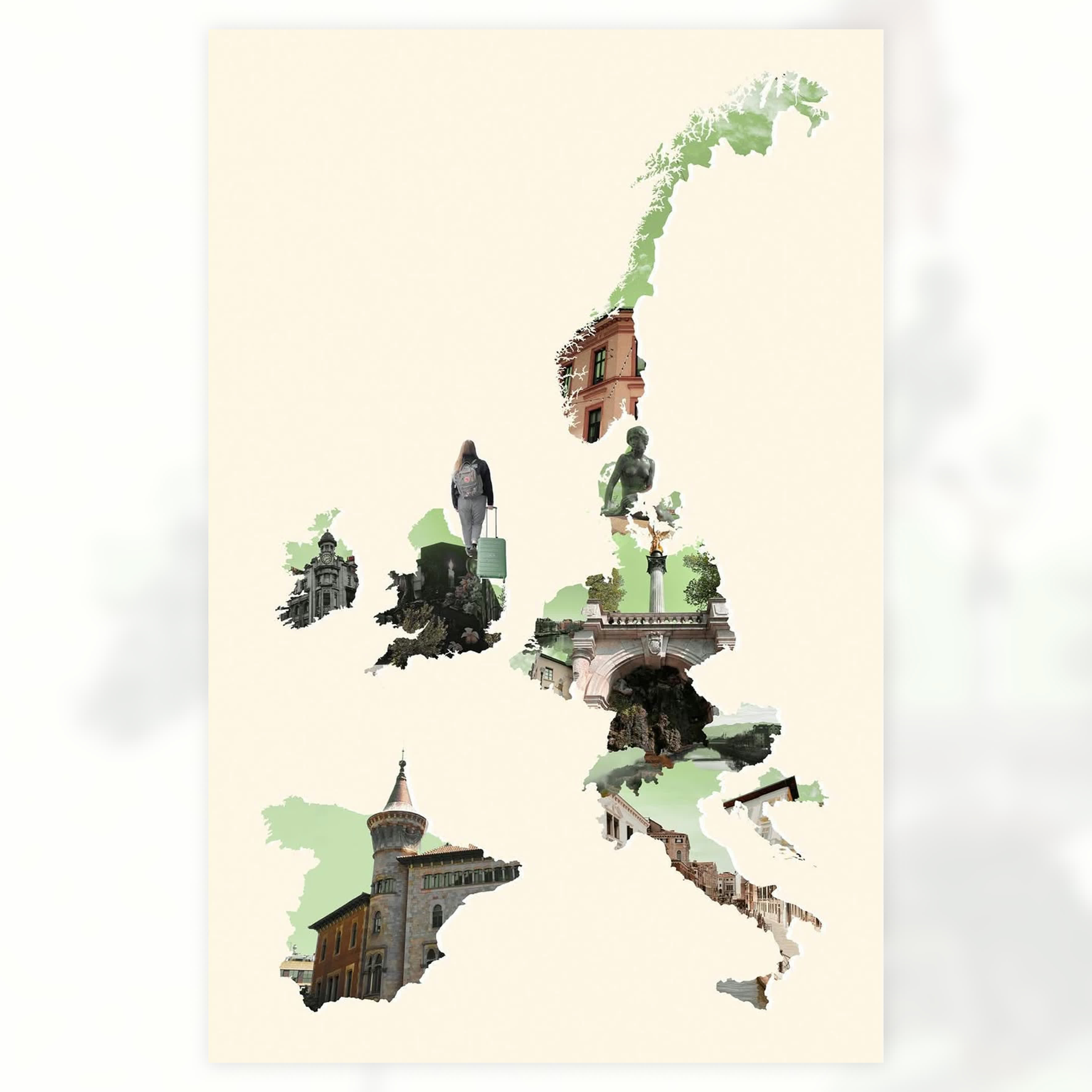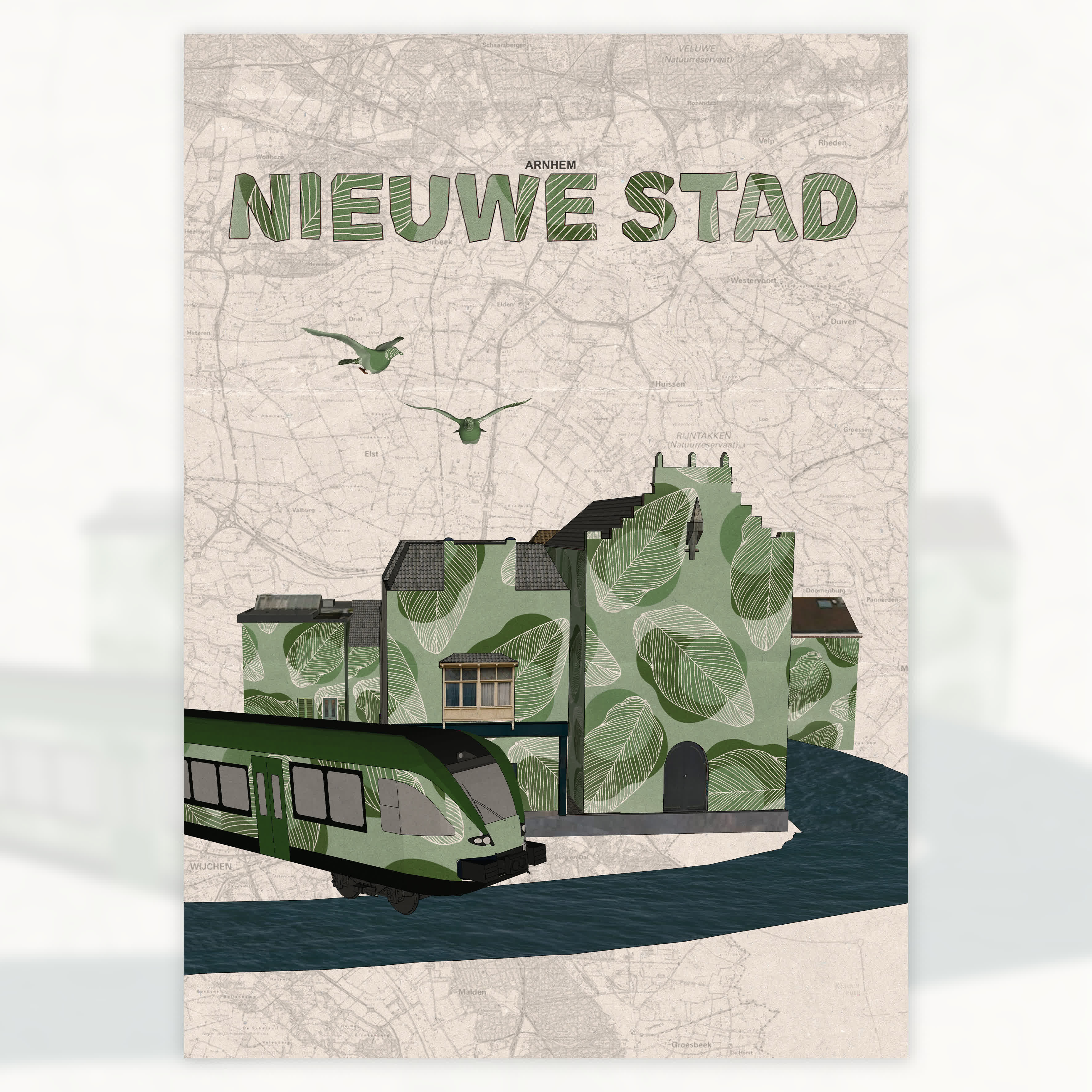 A poster series of four exploring what I find important in cities; the main themes I added being nature, water, and public transport. In my ideal city nature and architecture would go hand in hand and cars would no longer be allowed