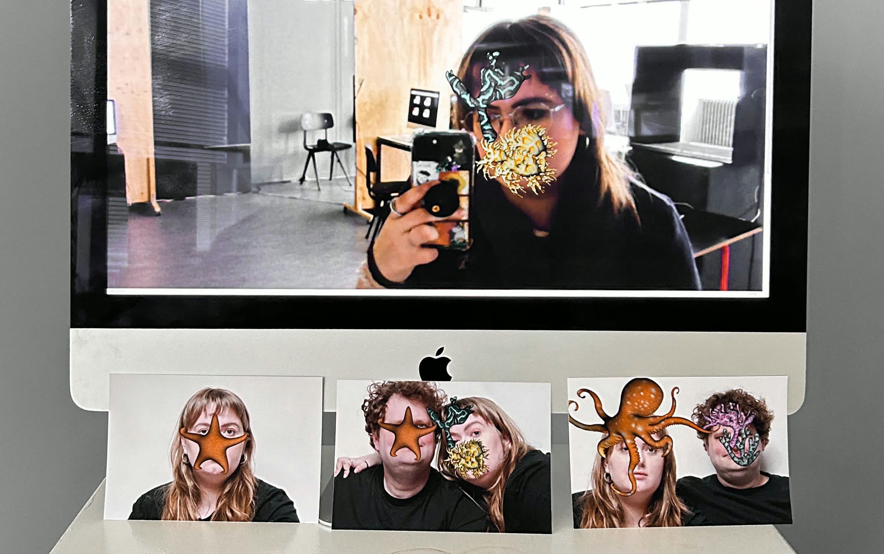 A suffocating face filter collection. An increasing number of sea species are unable to survive due to climate change. I reversed the roles to illustrate how our own actions would suffocate us, mirroring the fate of these innocent creatures
